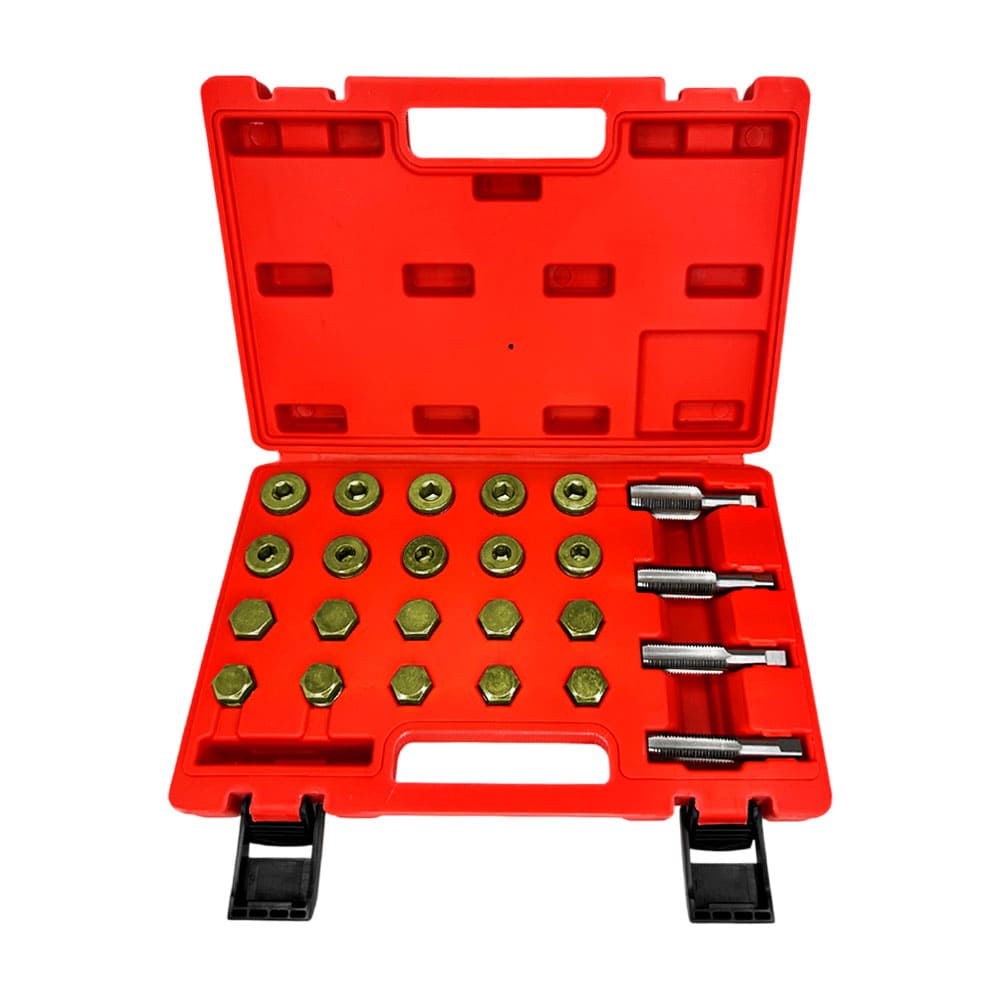 Набор применяется для ремонта разрушенной резьбы в сливных или заливных отверстиях поддонов и картеров ДВС различных транспортных средств и оборудования.