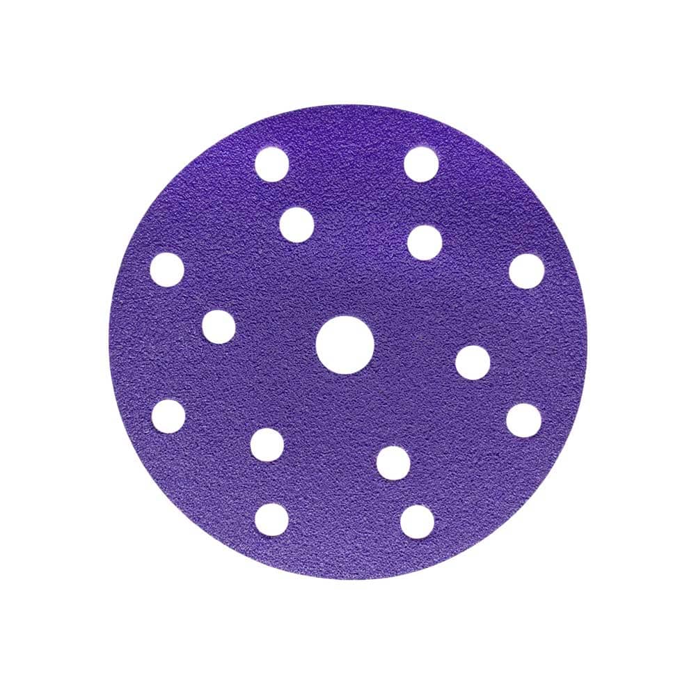 Наждачная бумага фиолетовая D150 мм P100 Velcro (тип зерна – керамика) 15 отверстий Гамматест SL737PP100