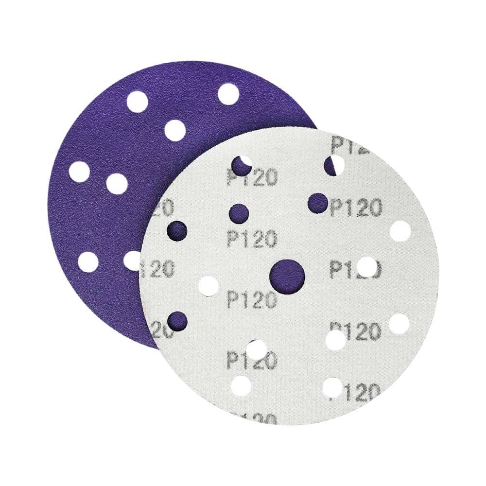 Наждачная бумага фиолетовая D150 мм P120 Velcro (тип зерна – керамика) 15 отверстий Гамматест SL737PP120