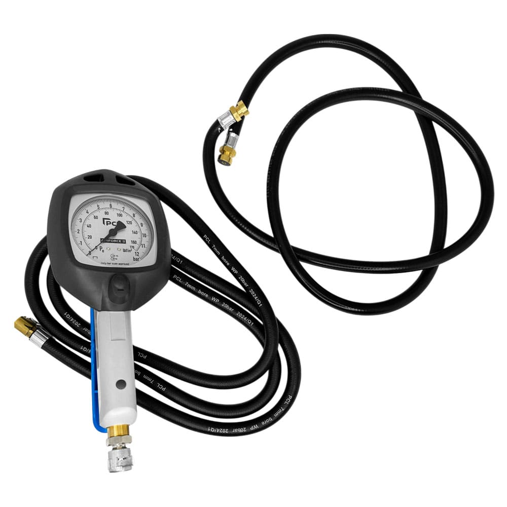 Он оснащен механическим индикатором давления, позволяющим контролировать уровень давления в шинах во время работы.
