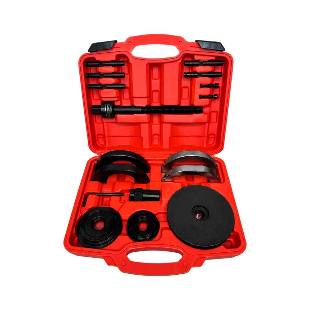 Комплект инструментов и приспособлений для выпрессовки и установки ступичных подшипников позволяет вести работы прямо на автомобиле и не тратить время на временный демонтаж рычагов.